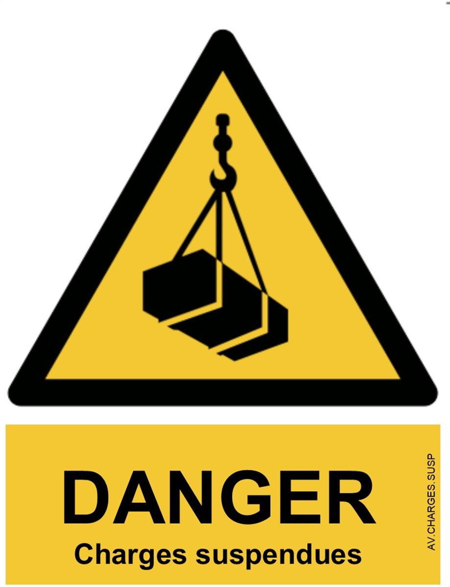 Panneau Attention Danger Charges suspendues - Dos Autocollant - Norme ISO NF 7010