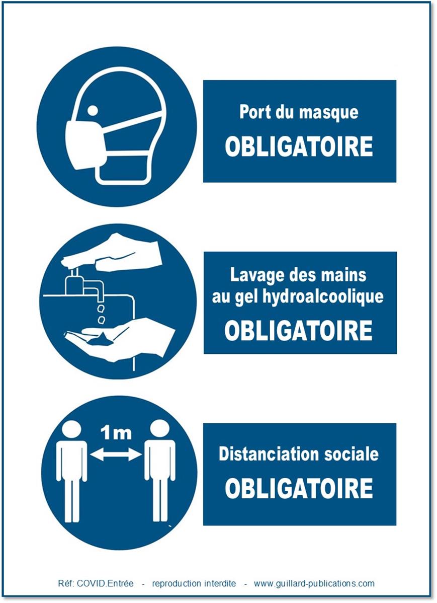 Panneau de signalisation à afficher à l'entrée d'un établissement commercial ou une entreprise afin de lutter contre la propagation du virus covid 19